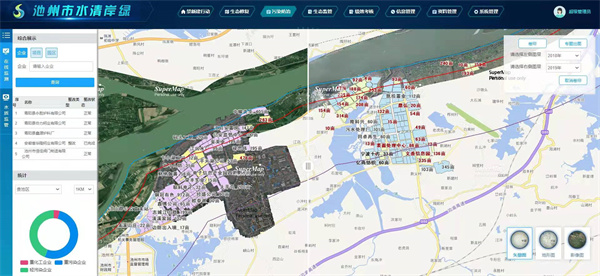 池州水清岸綠項目應(yīng)用高分系列的衛(wèi)星遙感數(shù)據(jù),利用定期更新的高分辨率遙感衛(wèi)星數(shù)據(jù)對企業(yè)狀態(tài)進(jìn)行高頻次監(jiān)管,滿足各級行政單位數(shù)據(jù)查詢、統(tǒng)計。