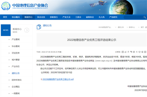 ?中水三立參建數(shù)字巢湖項(xiàng)目榮獲2022地理信息產(chǎn)業(yè)優(yōu)秀工程金獎(jiǎng)