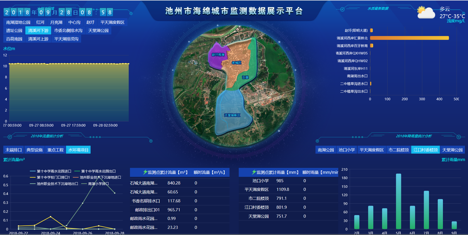 池州市海綿城市信息化管理平臺(tái),集在線監(jiān)測(cè)儀表、遠(yuǎn)程數(shù)據(jù)傳輸、業(yè)務(wù)監(jiān)管、數(shù)學(xué)模型分析與預(yù)測(cè)、考核評(píng)估與PPP項(xiàng)目監(jiān)管等功能于一體,是一套完整涵蓋海綿城市規(guī)劃設(shè)計(jì)、建設(shè)實(shí)施、運(yùn)營監(jiān)管等各個(gè)階段的智慧化解決方案。