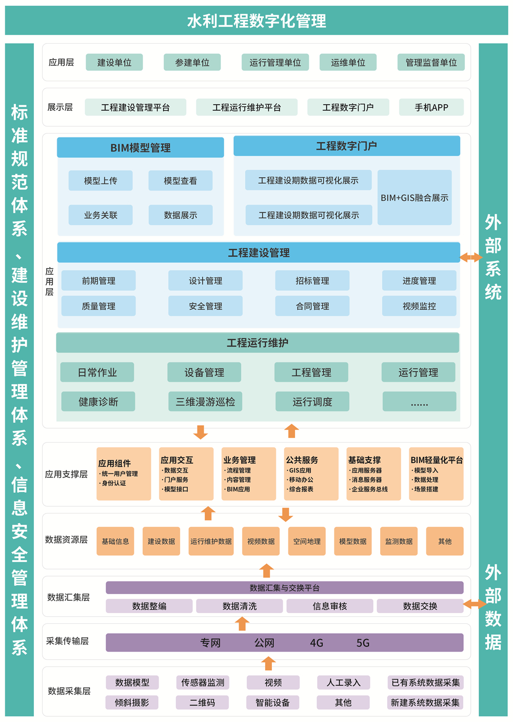 水資源作為人類生產(chǎn)生活必須的自然資源,具有非常重要的價(jià)值,因此通過(guò)水利工程的管理去實(shí)現(xiàn)水資源的合理調(diào)配,十分有必要。水利工程的管理主要是指針對(duì)水利工程規(guī)劃、設(shè)計(jì)、建設(shè)、運(yùn)維等全生命管理,從大的層次來(lái)看,主要包括建設(shè)期和運(yùn)行維護(hù)期。傳統(tǒng)的水利工程管理在工程建設(shè)期和工程運(yùn)行維護(hù)期各自建立封閉的信息系統(tǒng),數(shù)據(jù)資源難以共享,工程運(yùn)行期難以獲取工程建設(shè)期的相關(guān)資料,從長(zhǎng)期來(lái)看,不利于水利工程的統(tǒng)一調(diào)度管理。