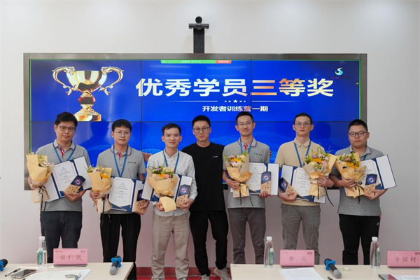 隨后,由任總、各職能部門負責人等專家和領(lǐng)導為一期優(yōu)秀學員進行頒獎,并合影留念。