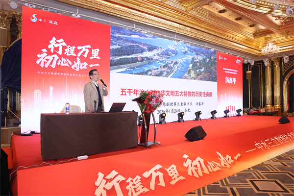 湯鑫華會(huì)長則以其淵博的歷史學(xué)識(shí),帶來了《五千年治水對(duì)中華文明五大特性的歷史性貢獻(xiàn)》專題分享。他從宏大的歷史視角出發(fā),深刻揭示了治水活動(dòng)在中華文明形成、發(fā)展及繁榮過程中的歷史性貢獻(xiàn),展現(xiàn)了治水文化所蘊(yùn)含的深厚智慧與不竭動(dòng)力。湯會(huì)長的分享不僅激發(fā)了現(xiàn)場(chǎng)嘉賓對(duì)治水文化的深刻共鳴,更為中水三立人傳承和弘揚(yáng)企業(yè)文化提供了寶貴的精神財(cái)富。