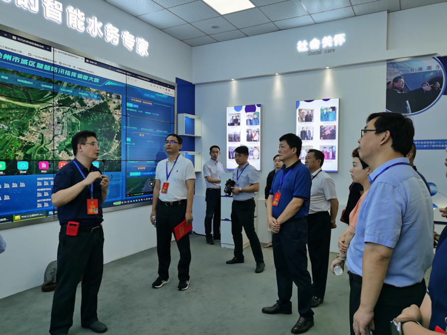 總經(jīng)理李兵陪同區(qū)人大代表一行參觀了我公司硬件產(chǎn)品實驗園,了解水位圖像自動監(jiān)測站、雨量自動監(jiān)測站、地下水位監(jiān)測站、氣象站及土壤墑情監(jiān)測站等產(chǎn)品,并參觀了云計算與大數(shù)據(jù)研發(fā)應(yīng)用中心,聽取了軟件產(chǎn)品系統(tǒng)介紹。代表一行主要了解智慧水利系統(tǒng)、洪水預報與調(diào)度系統(tǒng)、水利工程管理系統(tǒng)等。